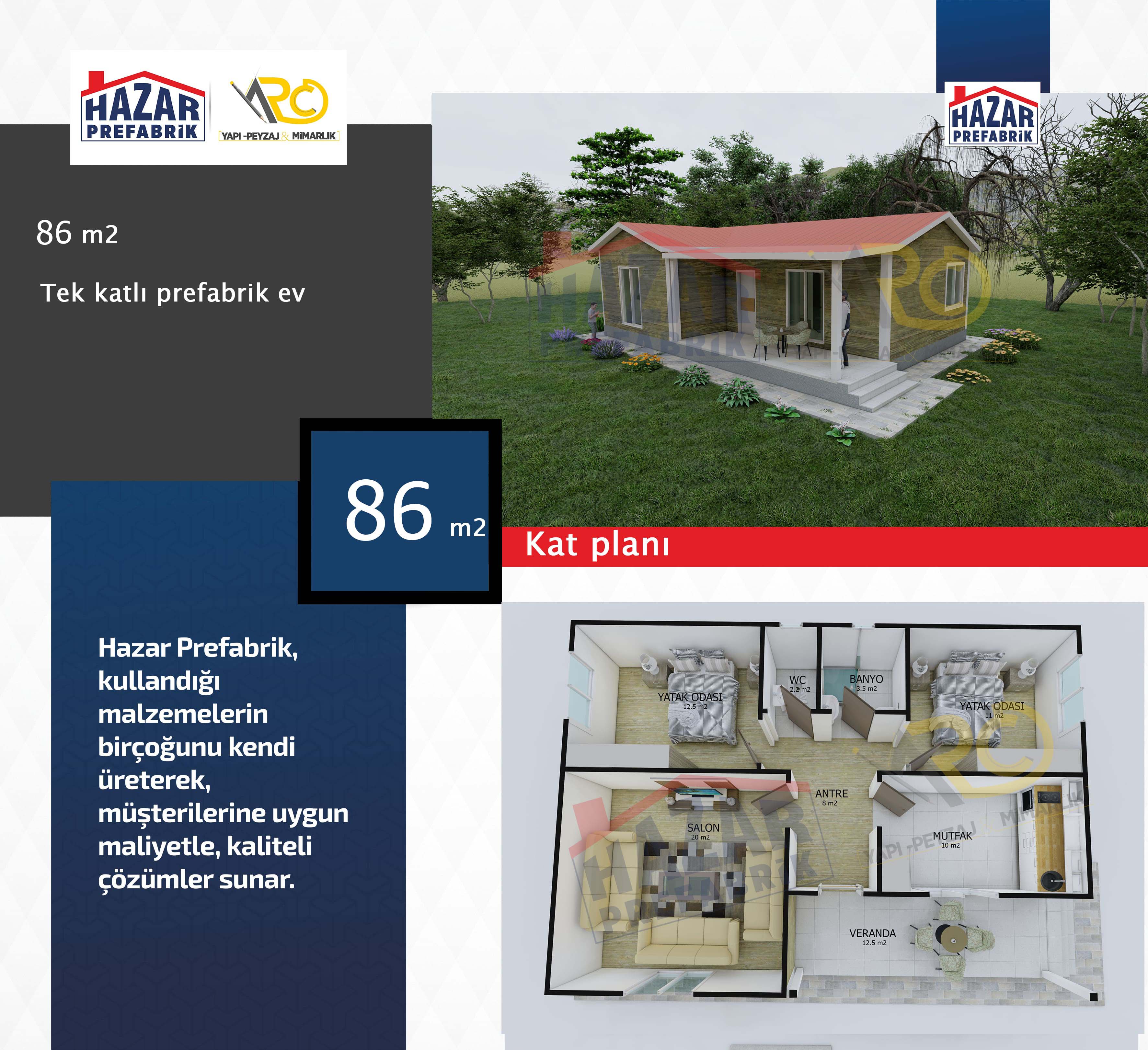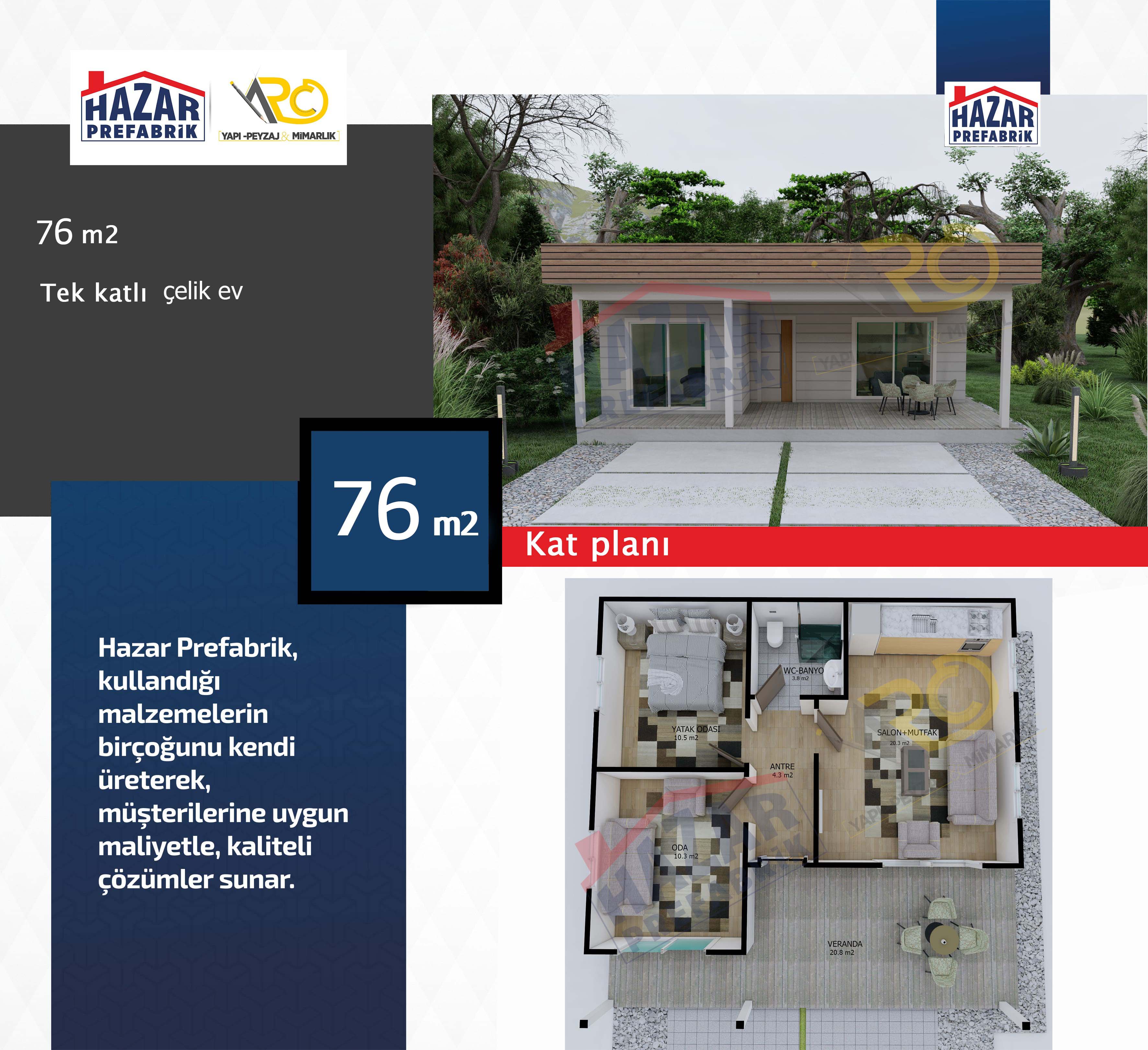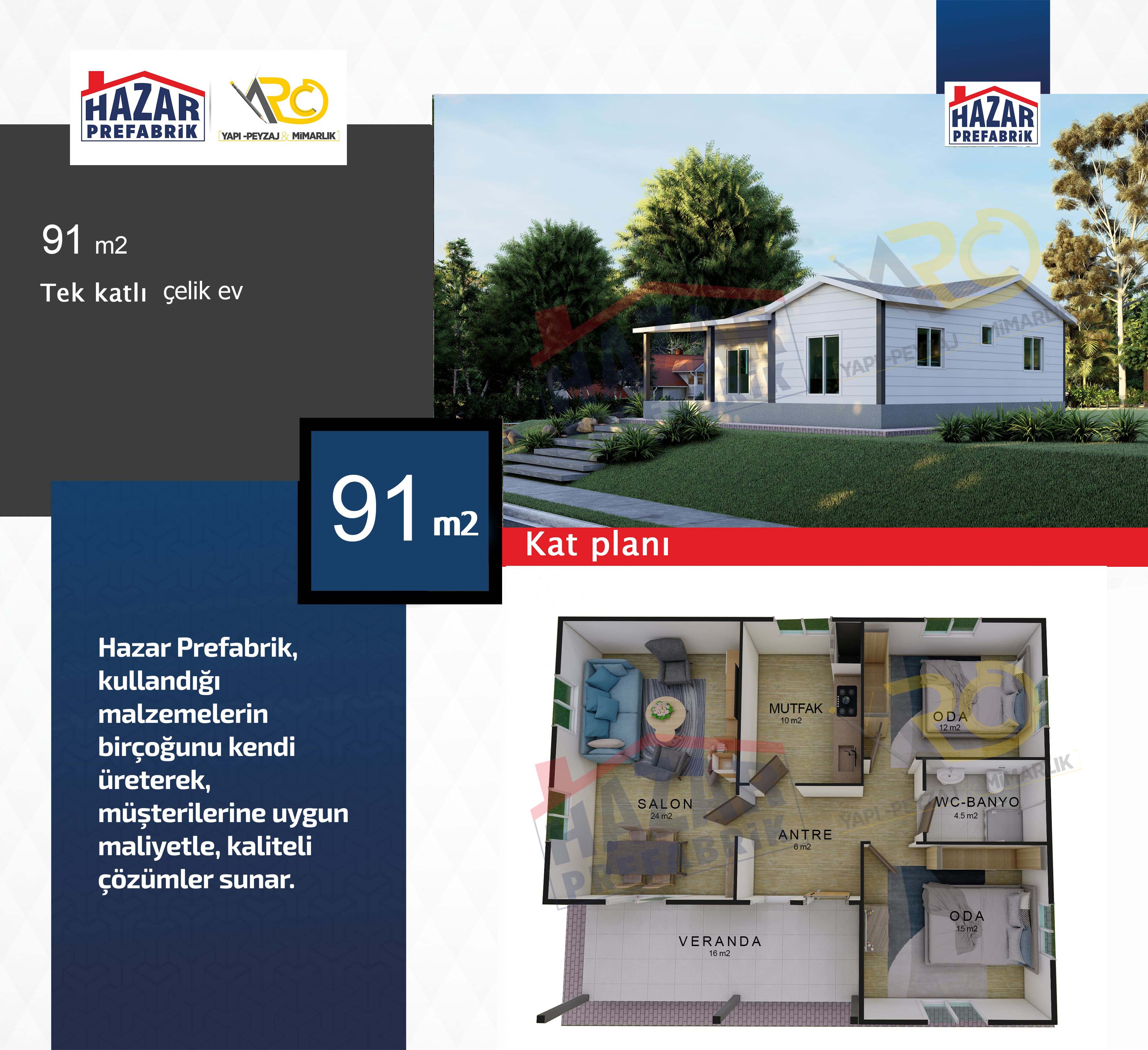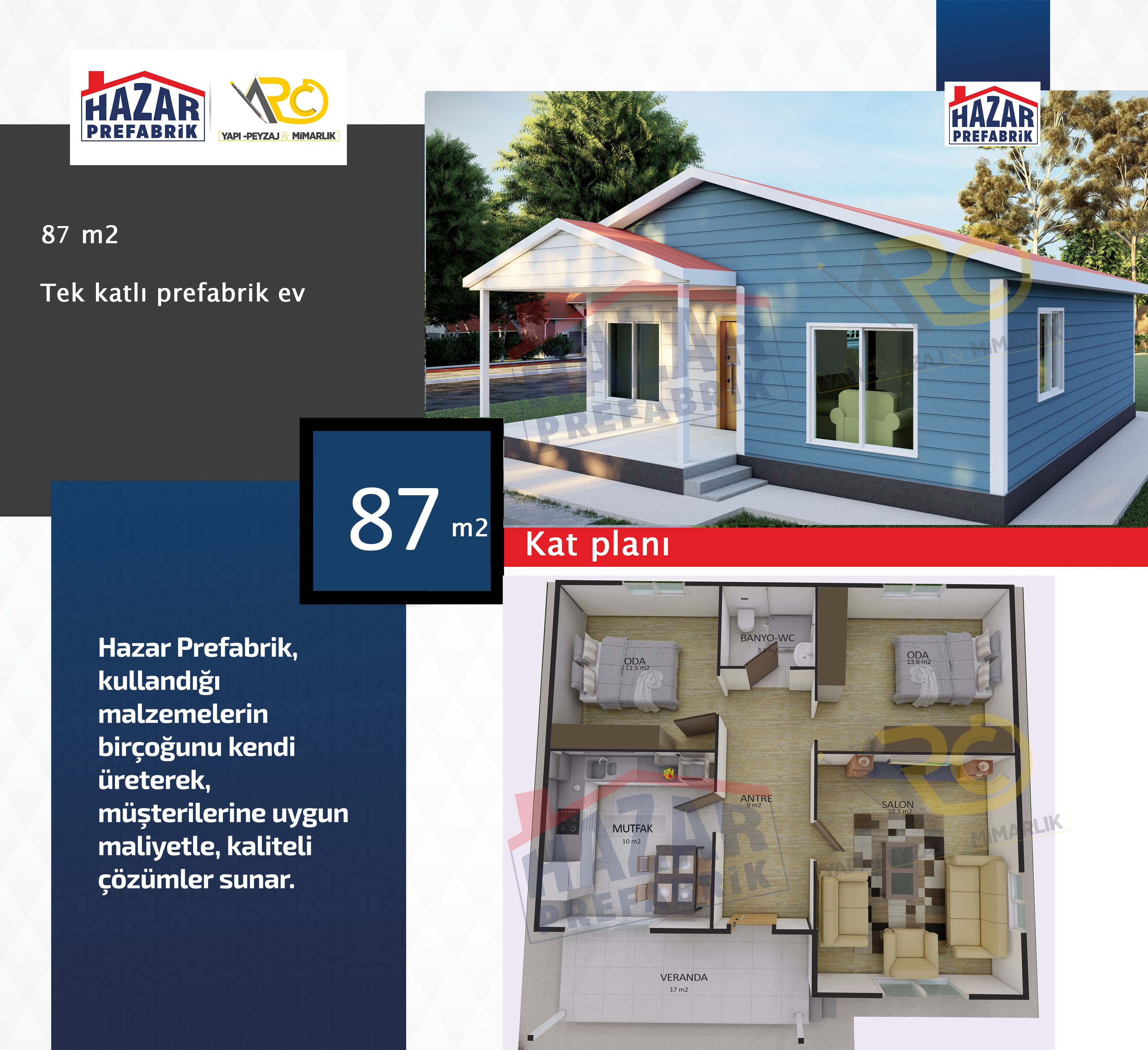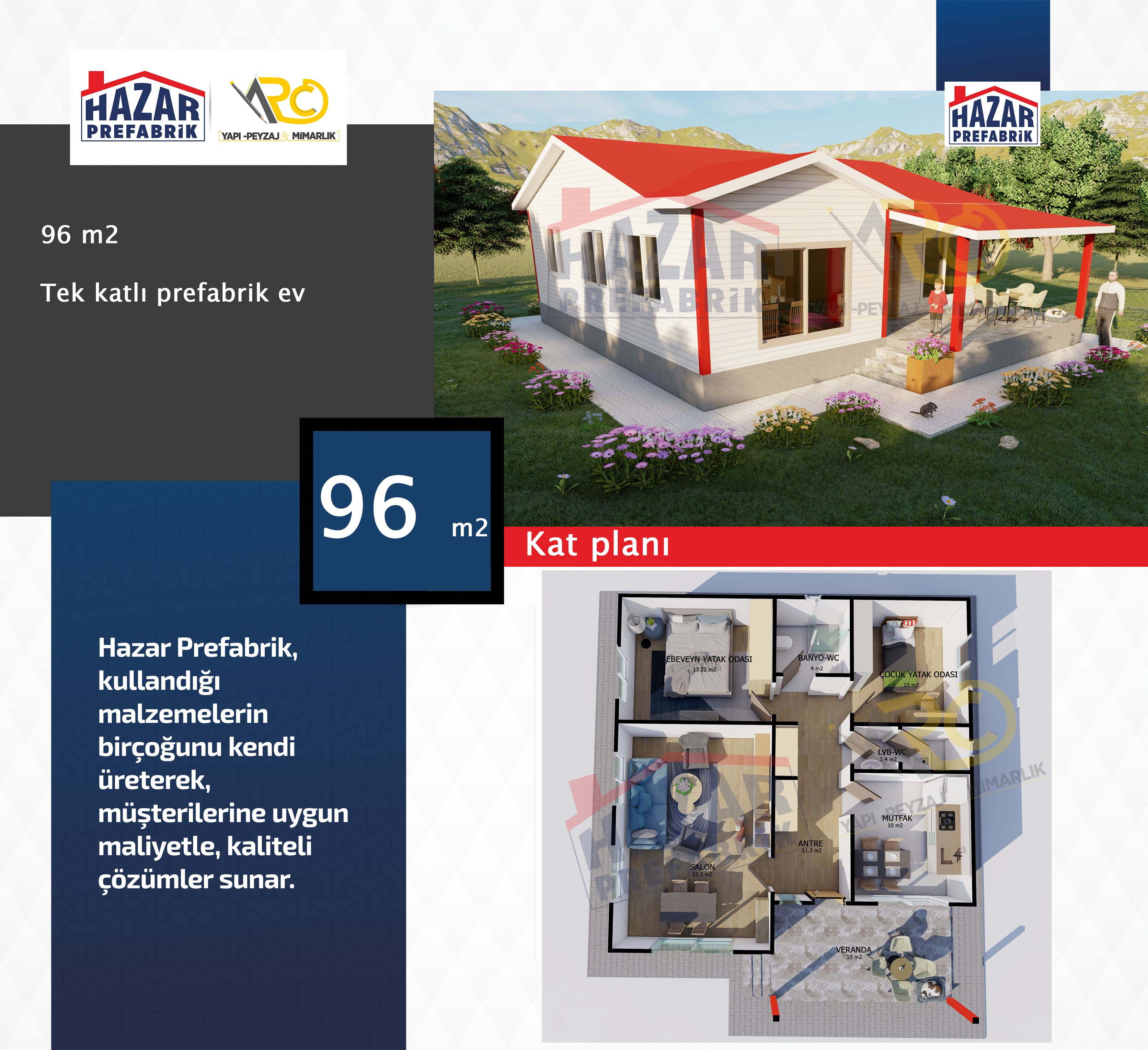 – Son teknolojiyle üretilen hazır evlerin iç mekanları rahat, pratik ve konforludur. Yaşam alanlarından azami seviyede yararlanılabilecek şekilde tasarlanmıştır.
