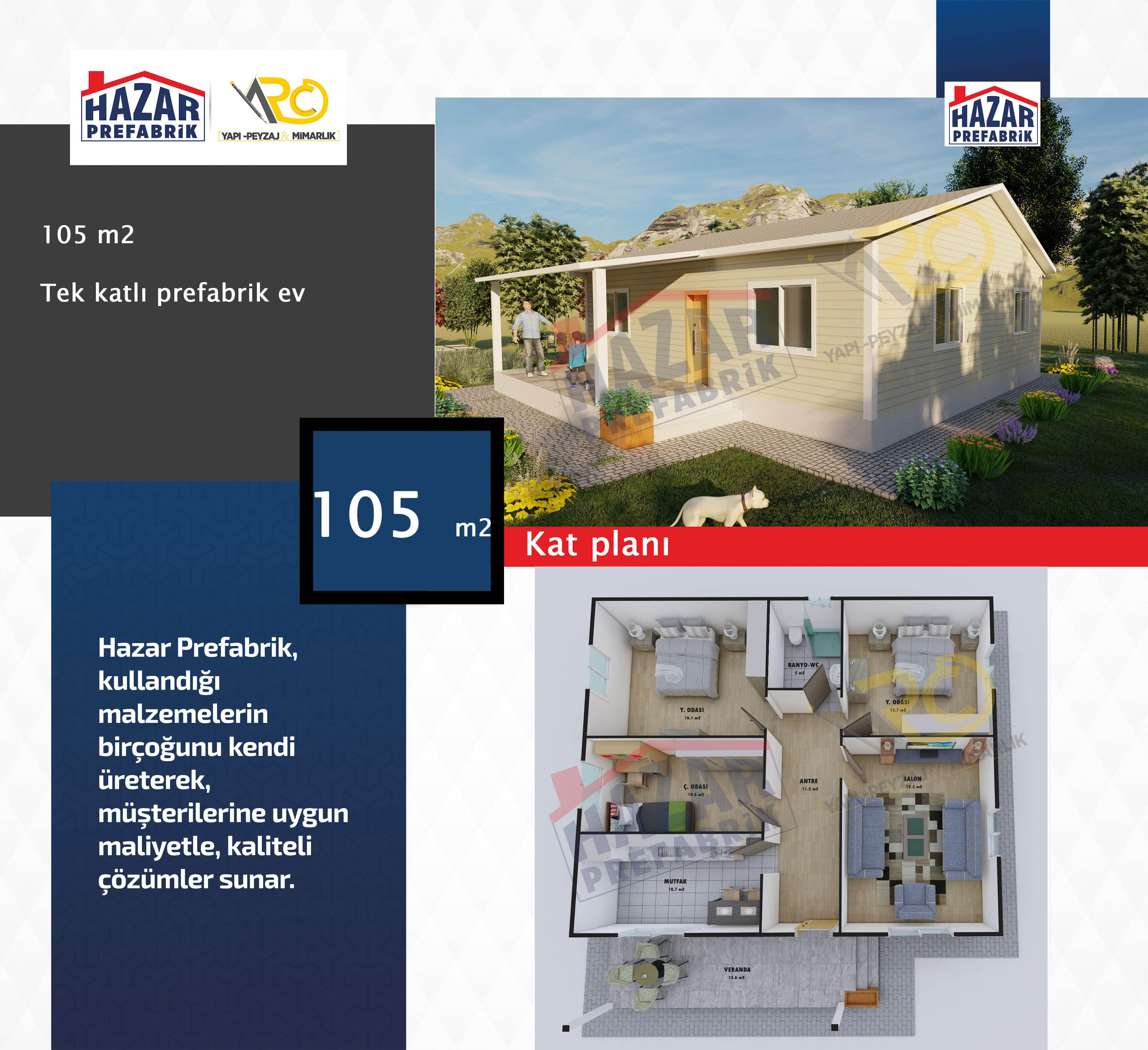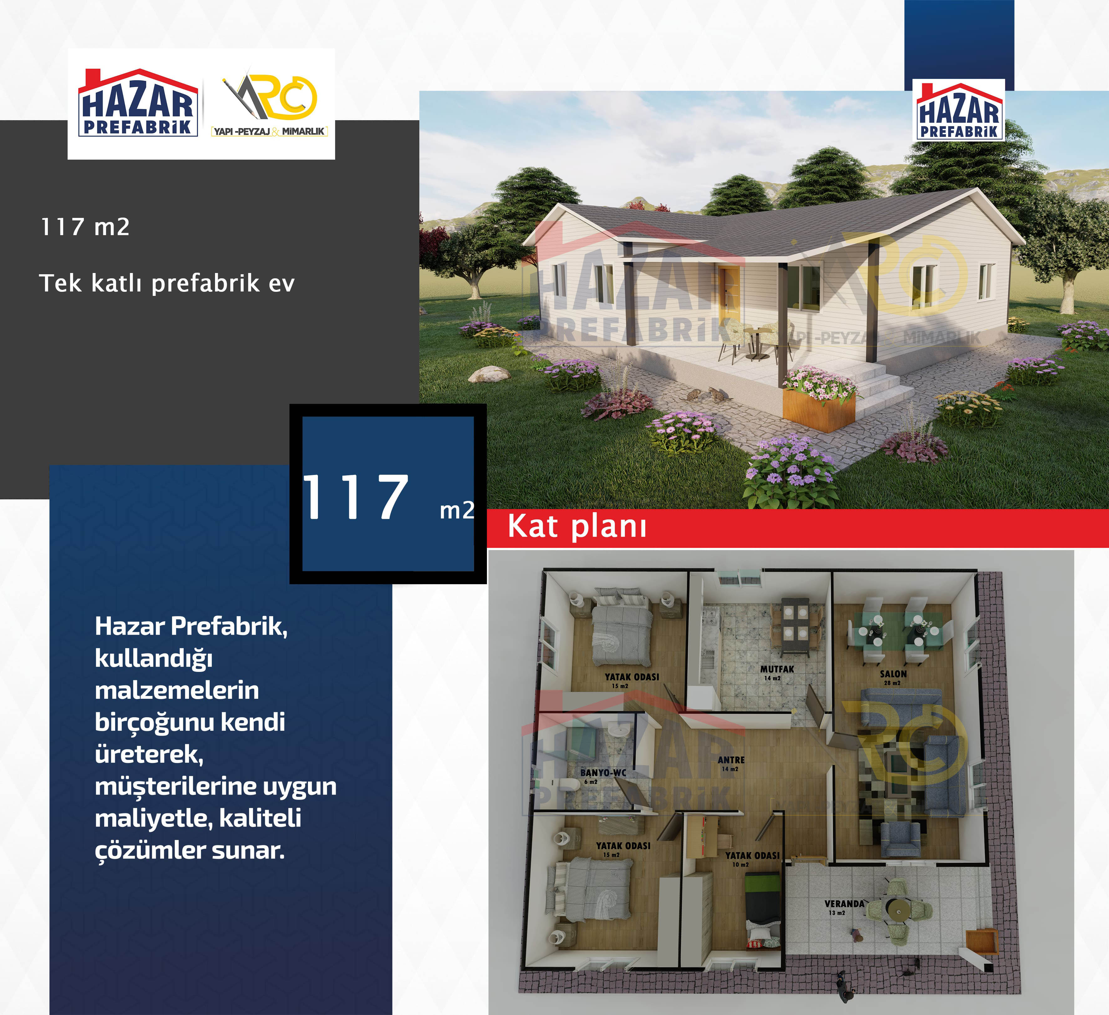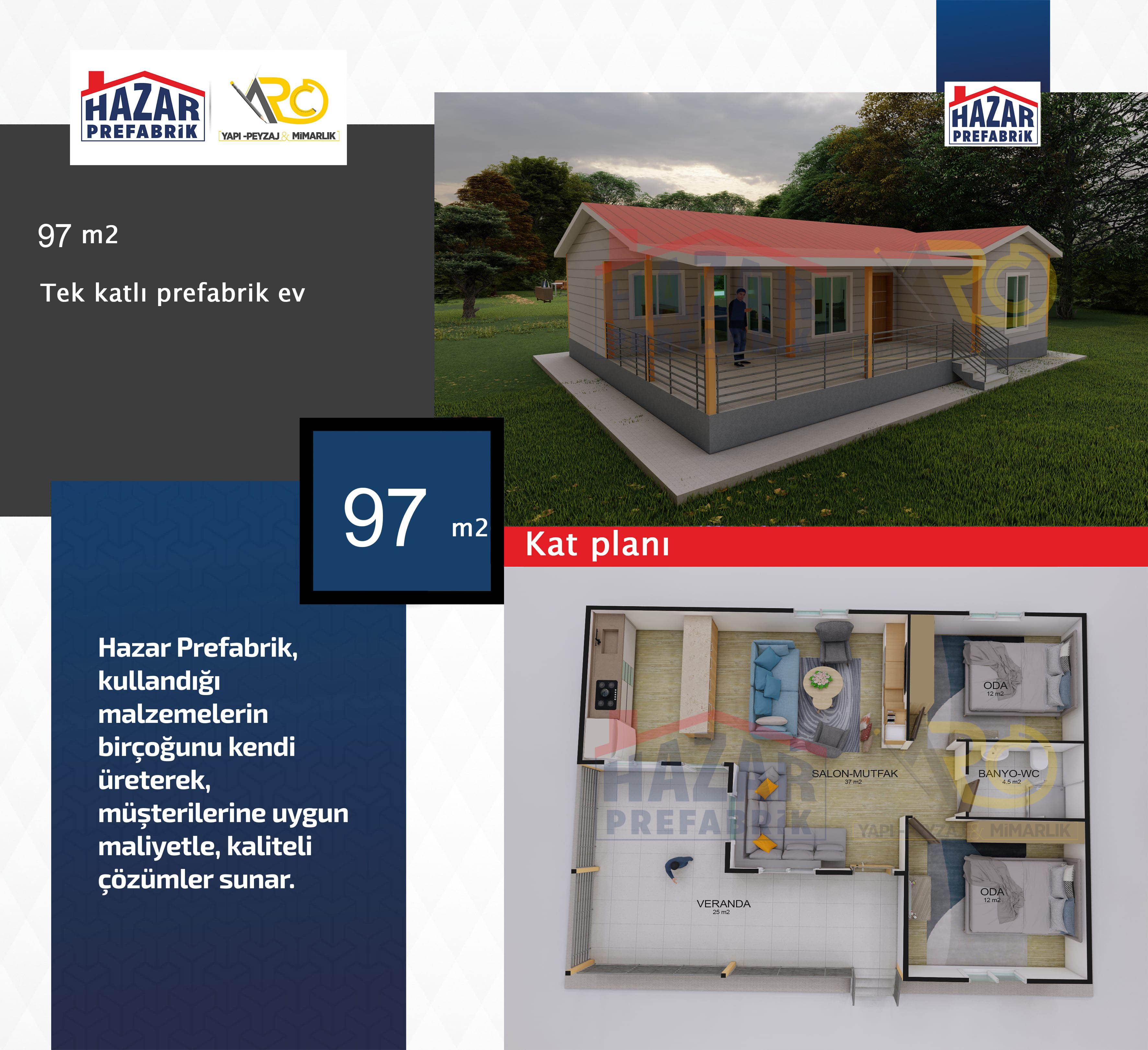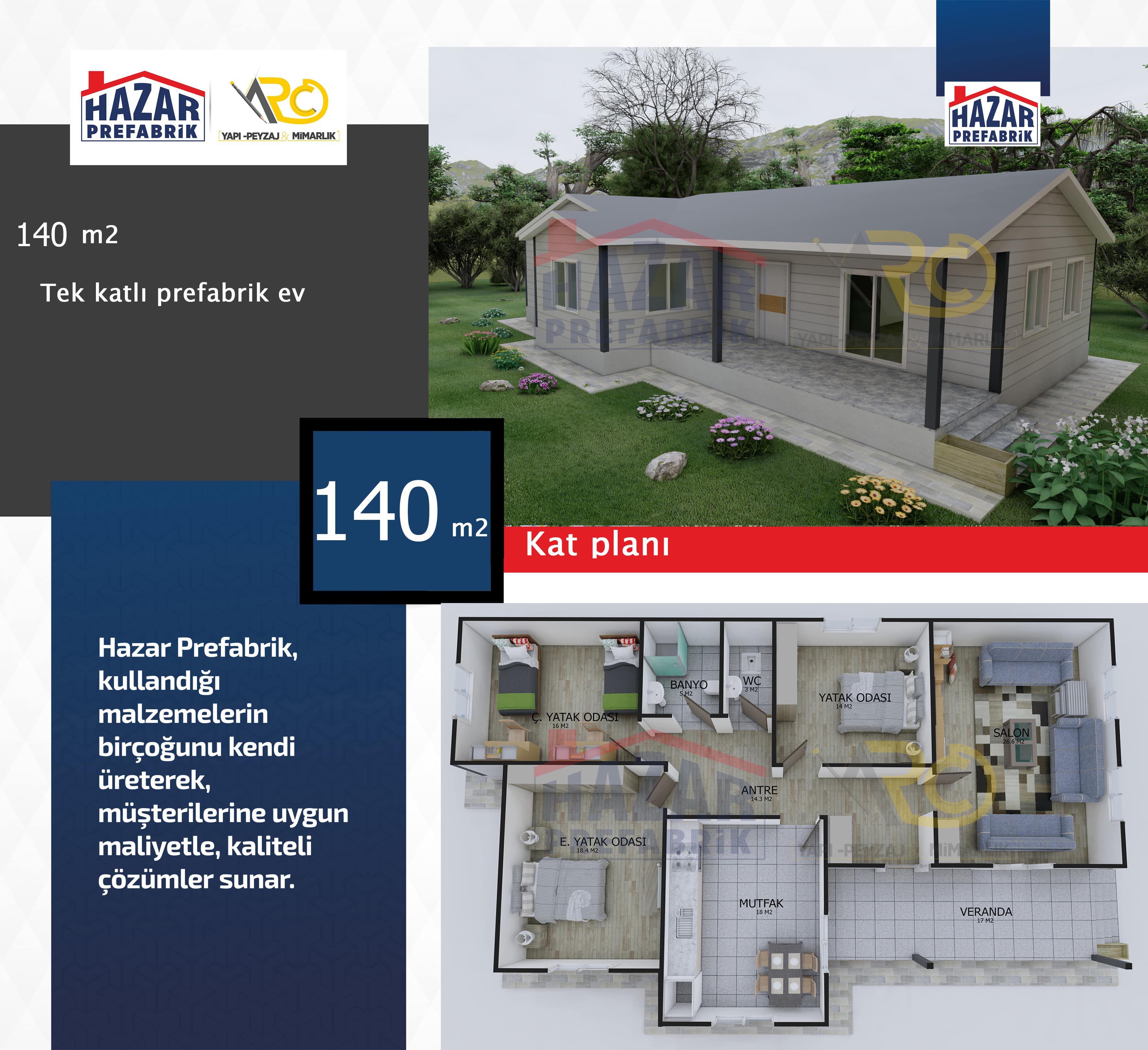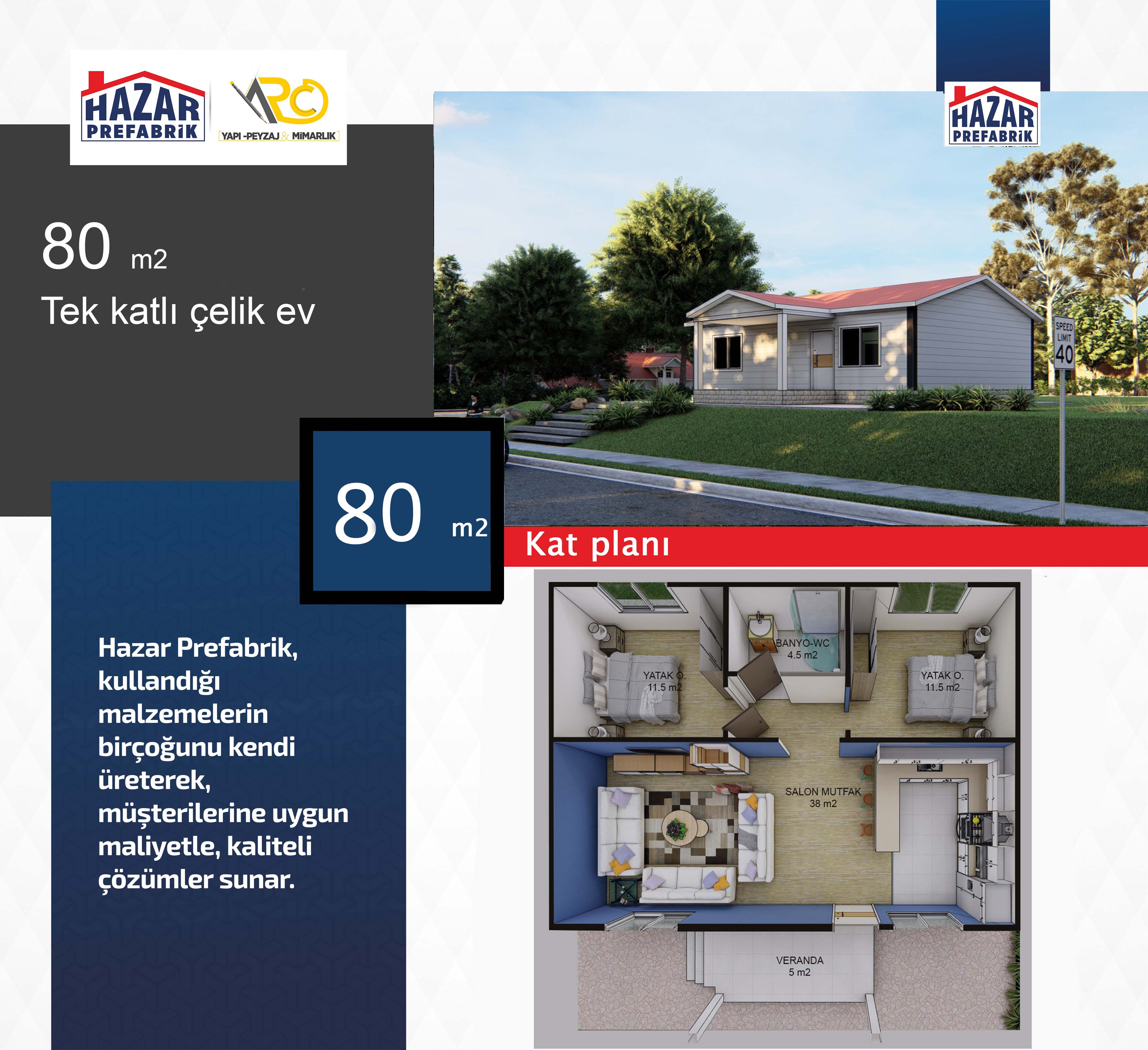 – Son teknolojiyle üretilen hazır evlerin iç mekanları rahat, pratik ve konforludur. Yaşam alanlarından azami seviyede yararlanılabilecek şekilde tasarlanmıştır.
